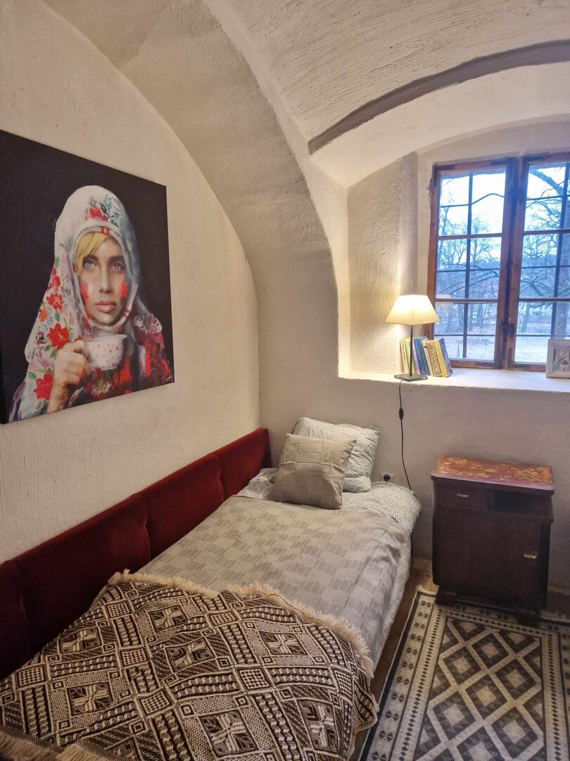 Pokój Wartownia to klimatyczny 2 osobowy pokój z dużym, podwójnym łóżkiem i łazienką. Jest możliwość wstawienia łóżeczka dla dziecka oraz rozdzielenia podwójnego łóżka na 2 pojedyncze. Małe okienko wychodzi na tunel miedzy dziedzińcami. Pokój znajdu