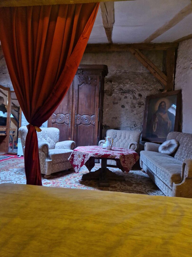 Komnata Luizy to obszerny 2 osobowy pokój z dużym, podwójnym łóżkiem i łazienką. Jest możliwość wstawienia dodatkowego łóżka lub łóżeczka dla dziecka. Ściany zdobią XVII wieczne, odrestaurowane freski. Pokój znajduje się na 1 piętrze głównego budynk