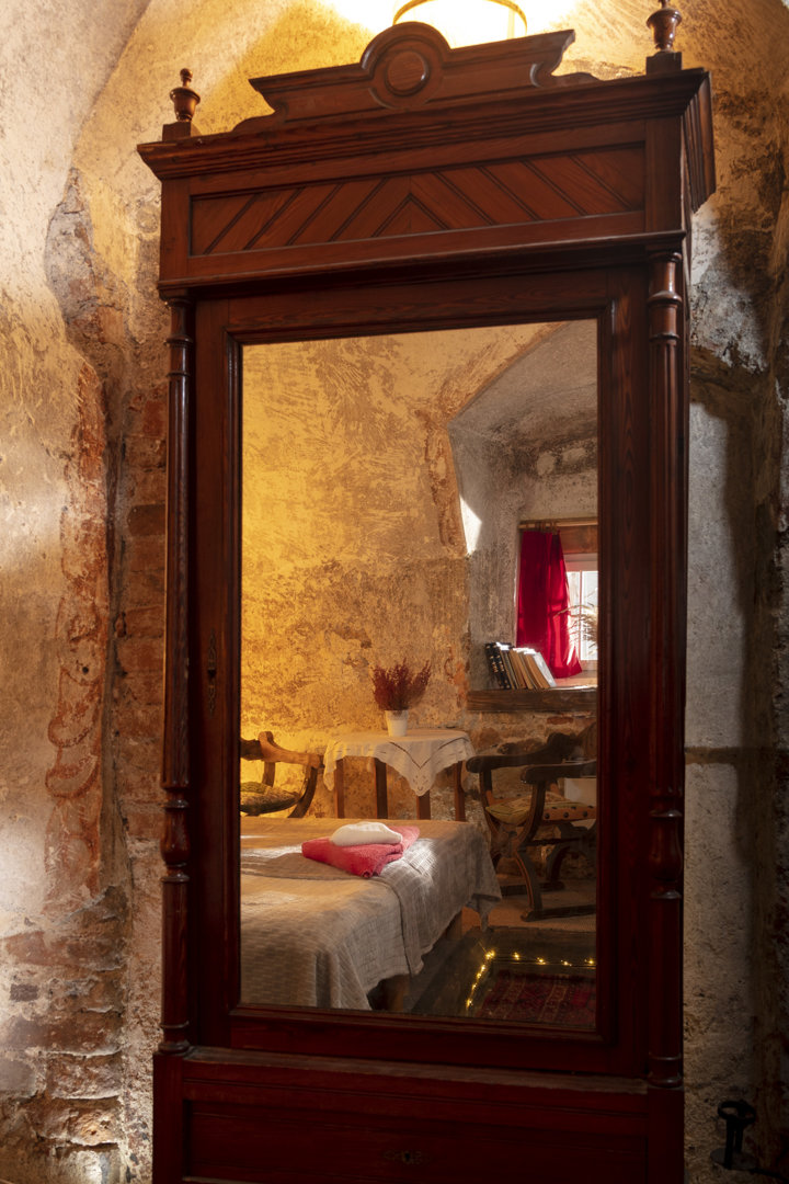 Komnata Luizy to obszerny 2 osobowy pokój z dużym, podwójnym łóżkiem i łazienką. Jest możliwość wstawienia dodatkowego łóżka lub łóżeczka dla dziecka. Ściany zdobią XVII wieczne, odrestaurowane freski. Pokój znajduje się na 1 piętrze głównego budynk